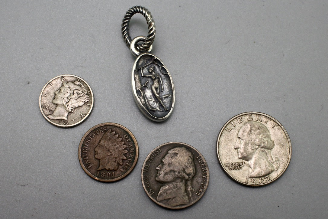 This piece has a Oak Nymph Sculpted into an oval, originally this was on one of my plateau rings, now repurposed into a pendant.